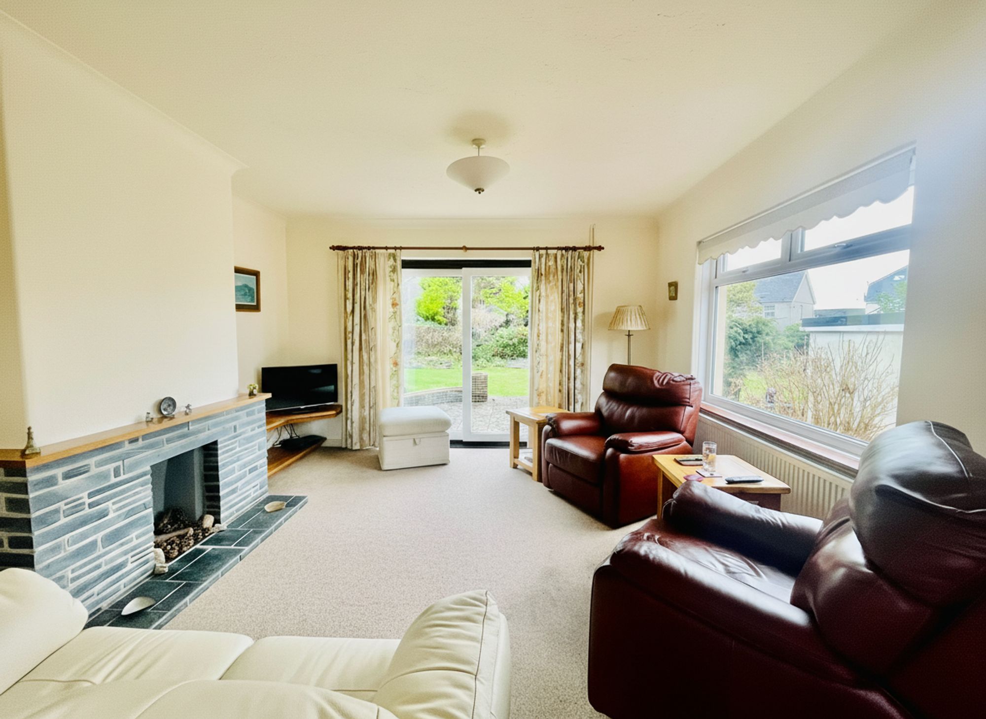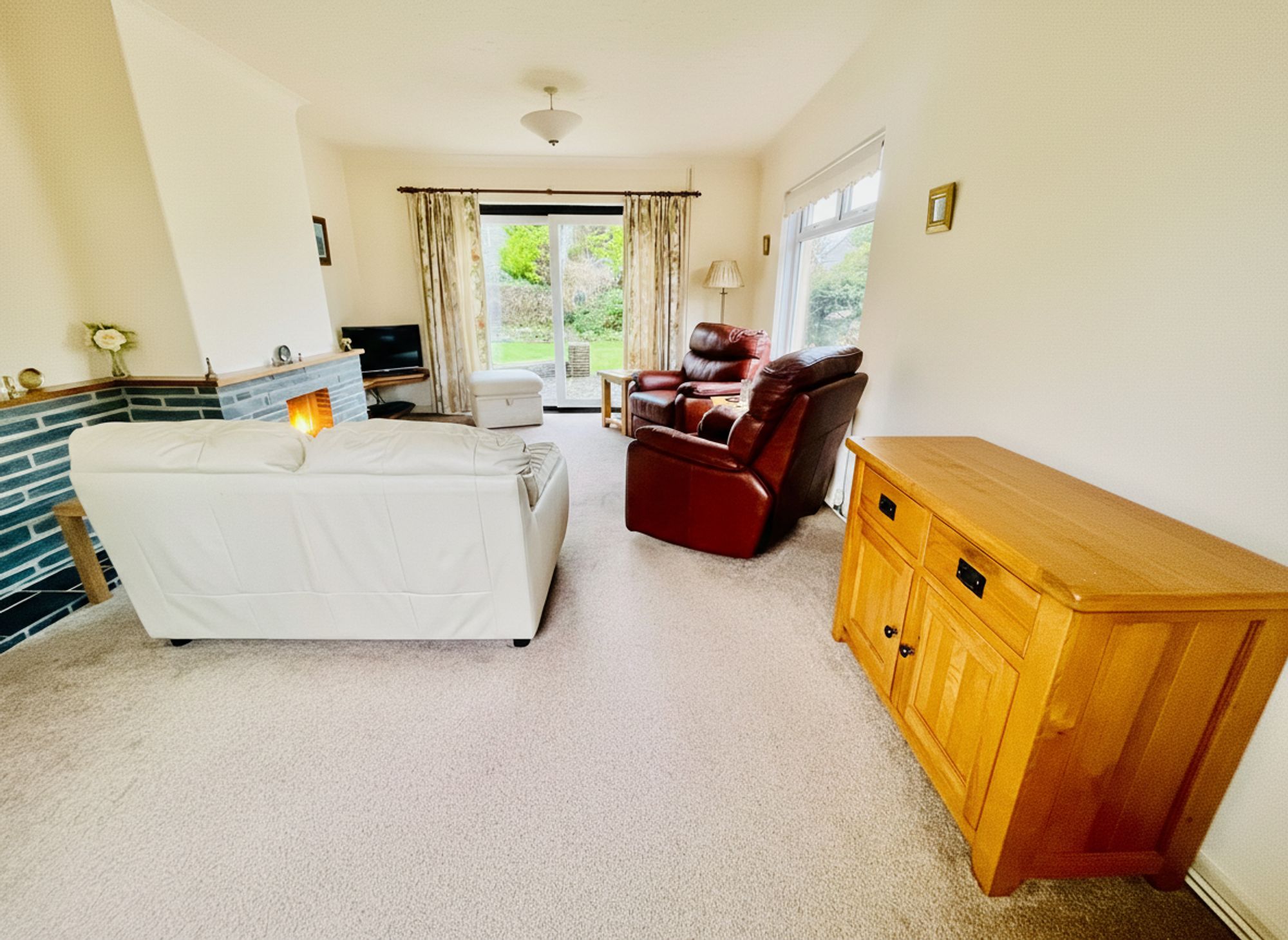 Lounge: A spacious yet cosy lounge with patio doors opening directly onto the rear garden — perfect for summer entertaining or relaxing evenings in.