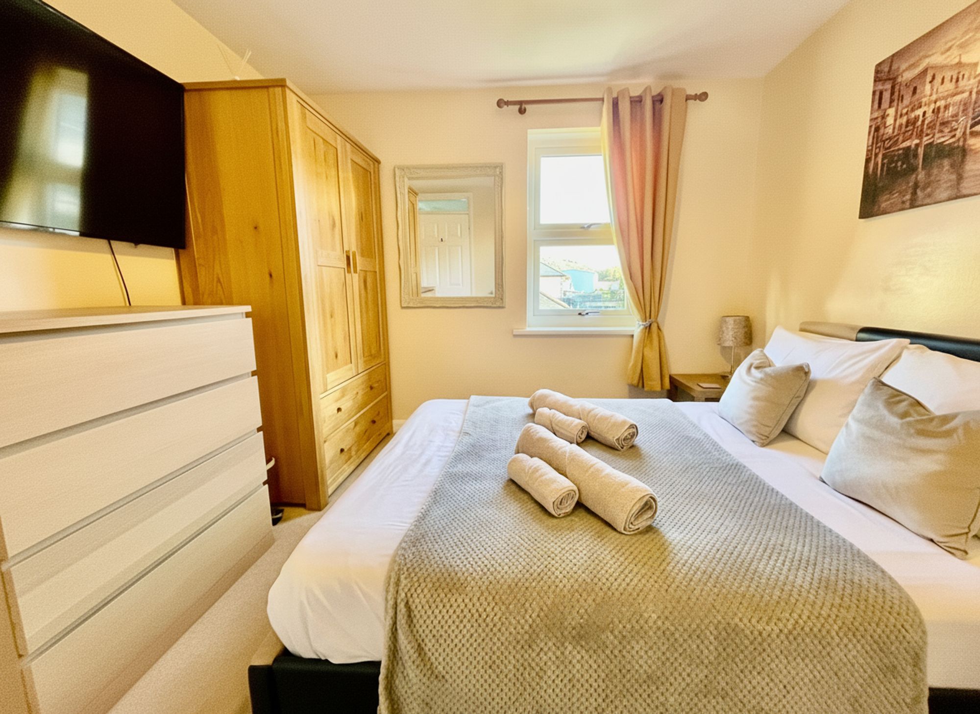 The main living room is a truly breath-taking space. Fully carpeted and beautifully decorated, it is flooded with natural light from large UPVC double-glazed windows that frame spectacular views over the harbour and out to sea. The room benefits from multiple power points, including USB sockets, a modern upgraded electric radiator, and offers a wonderful sense of space and calm. Properties with views like this very rarely come to market.