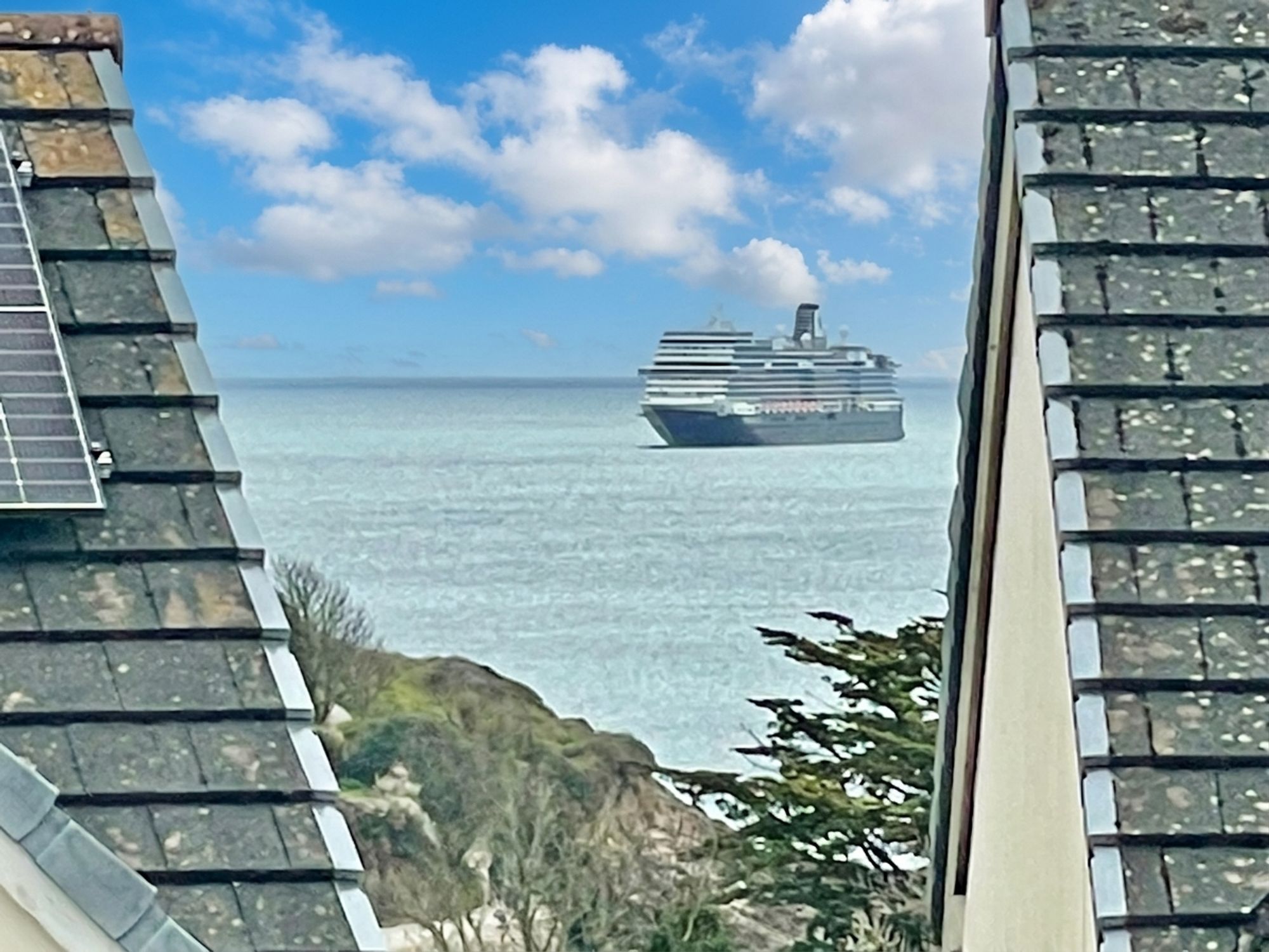 The second floor hosts three further well-proportioned bedrooms, all thoughtfully arranged to make the most of the home’s elevated position. The principal bedroom is particularly impressive, spanning the width of the house and enjoying rear views, together with a luxuriously refitted en suite shower room. The second bedroom to the front boasts stunning sea views towards Swanpool, while the third bedroom also enjoys attractive coastal outlooks. Together, the bedroom accommodation offers excellent flexibility for family life, guests, home working or creative space.