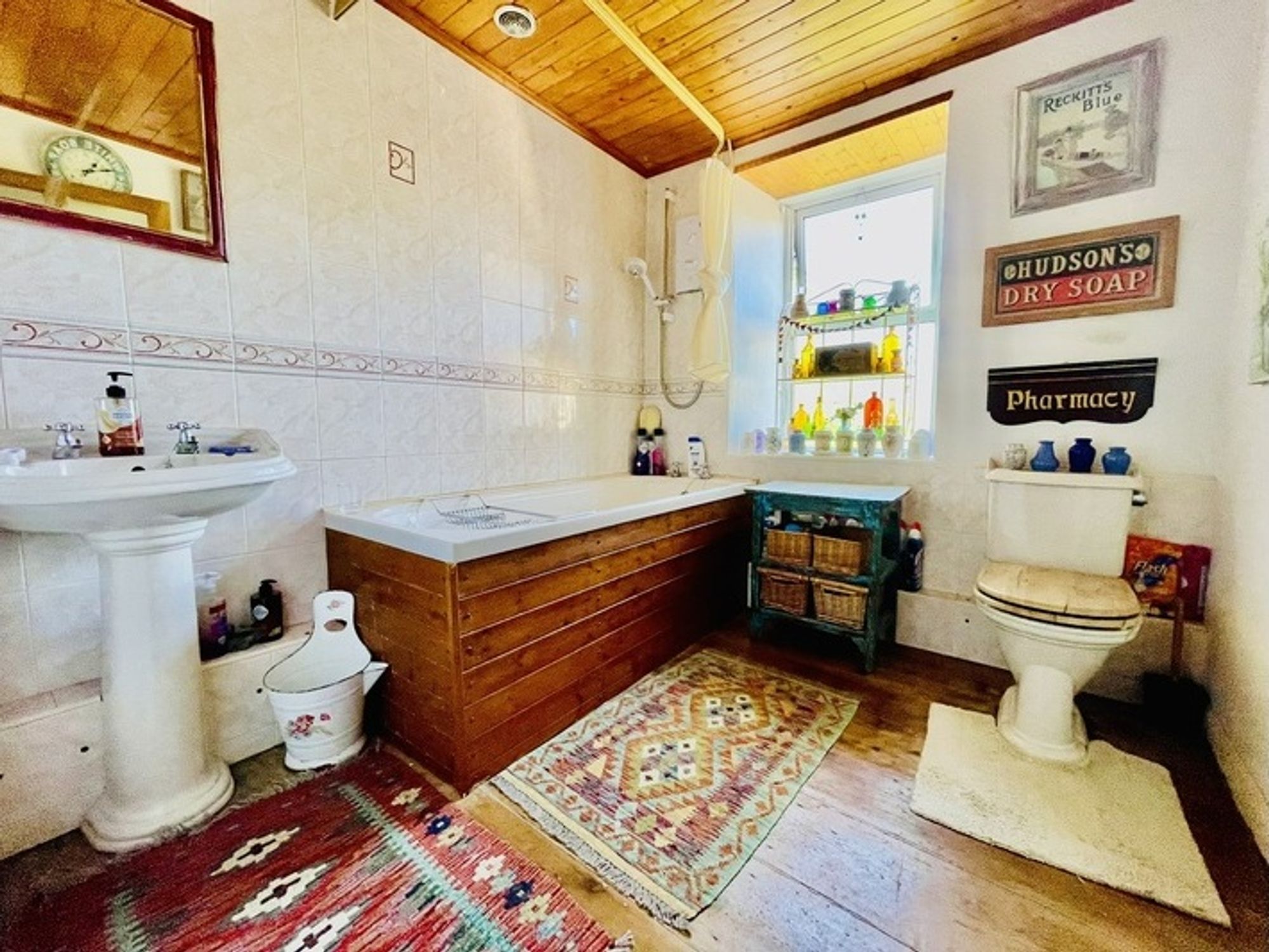The ground floor provides a choice of reception spaces, including a characterful lounge with exposed granite fireplace, a bright dining room with dual-aspect windows, and a breakfast room ideal for relaxed mornings. The spacious kitchen is fitted with granite worktops, a de-commissioned Rayburn (which could be re-commissioned), and a stable door opening directly into the Utility room then out to the Sublime garden. A ground-floor bedroom adds valuable versatility, whether for guests, multi-generational living, or use as a home office.