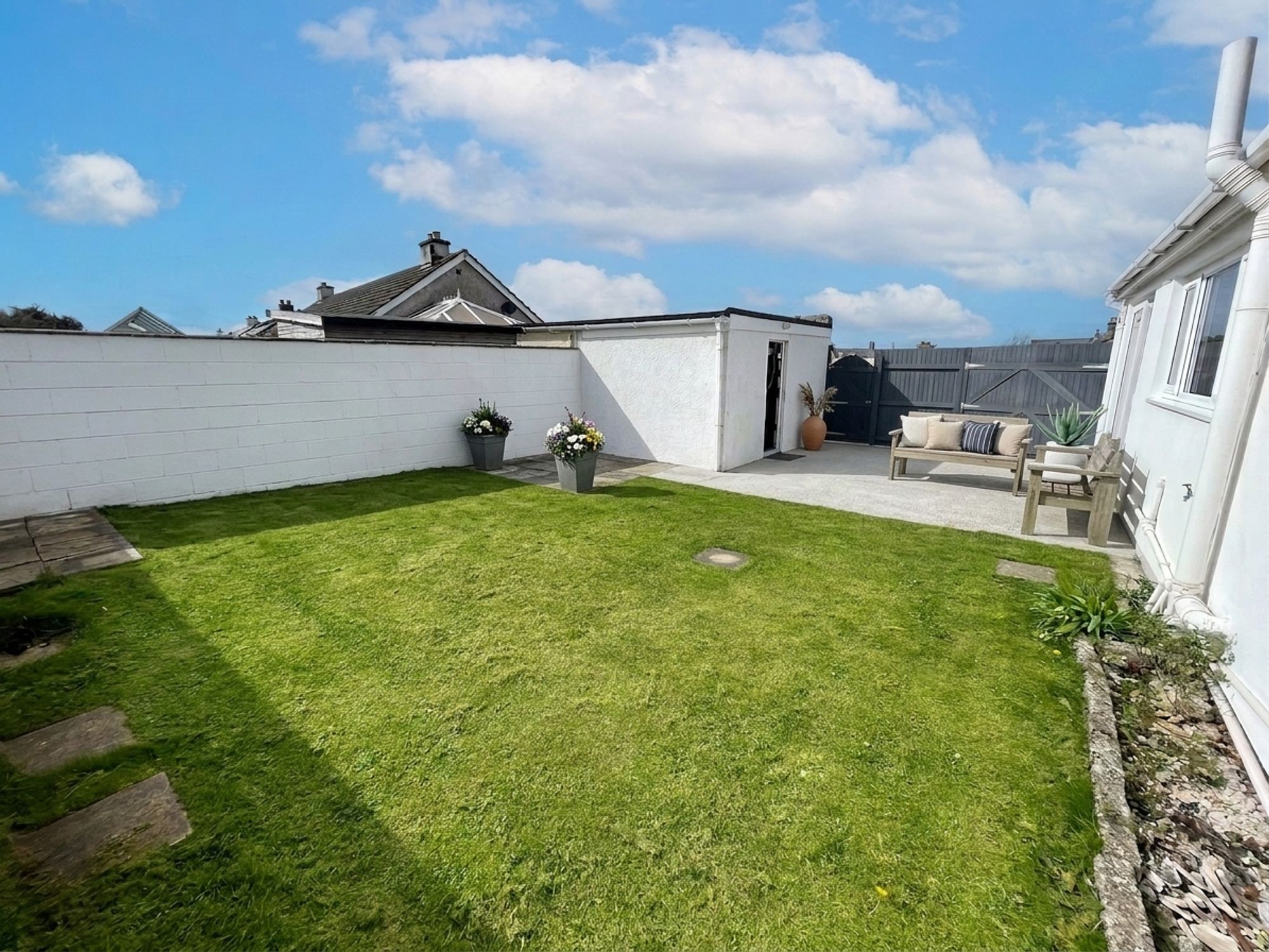 Outside, the rear garden is a real highlight—fully enclosed by a six-foot block wall, creating a wonderful sense of privacy and security. With a generous lawned area and a hard-standing seating space, it is ideal for summer barbecues, outdoor dining, or simply relaxing.