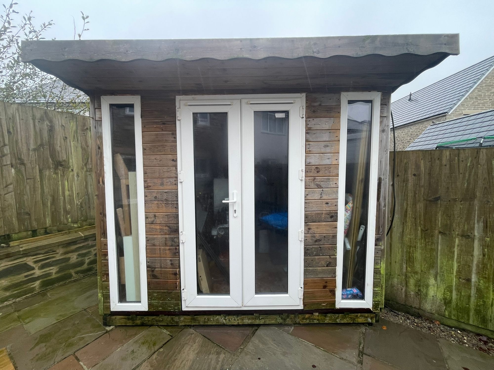 A superb summer house/storage shed benefits from full electrics and uPVC French doors, offering excellent versatility. The garden also includes an outdoor water tap, electric point and a very useful gated side access leading to a private enclosed area and returning to the front of the property.